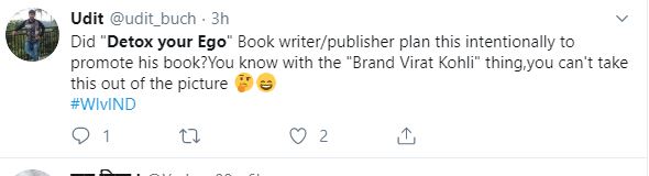 "Did "Detox your Ego" Book writer/publisher plan this intentionally to promote his book? You know with the "Brand Virat Kohli" thing, you can't take this out of the picture #WIvIND," one fan tweeted.