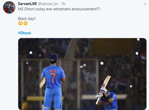"MS Dhoni today eve retirement announcement?? Black day!! #Dhoni," a Twitter user wrote.
