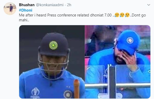 "#Dhoni Me after i heard Press conference related dhoniat 7.00 ....Dont go mahi..," another Twitter user wrote.