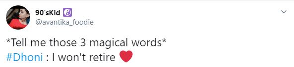 "*Tell me those 3 magical words* #Dhoni : I won't retire," a netizen wrote.