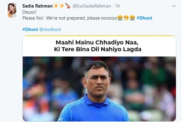 "Dhoni? Please No! We're not prepared, please nooooo #Dhoni #Dhoni