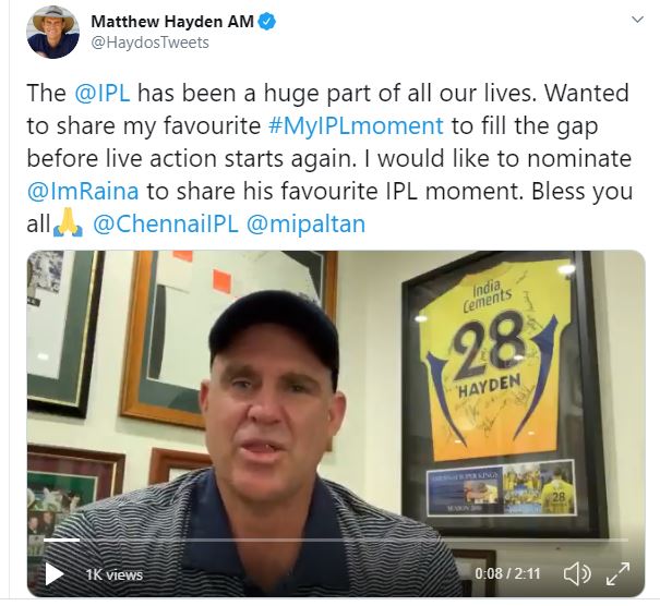 "In 2010 I got the opportunity to meet Dalai Lama, it was a great moment in my life, I got the chance to meet someone so special, I still remember the match between CSK and Kings XI Punjab at Dharamsala, we needed more than 190 and we were under the pump," Hayden said in the video.