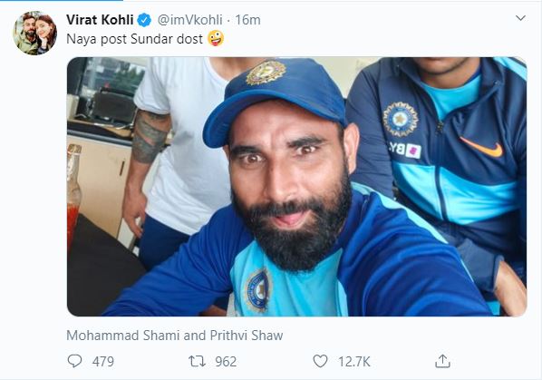 'Naya post, sundar dost': Virat Kohli posts pic with Shaw, Shami