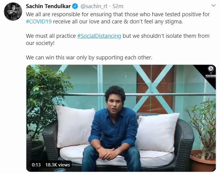 Practice social distancing but not isolate COVID-19 +ve patients: Sachin Tendulkar