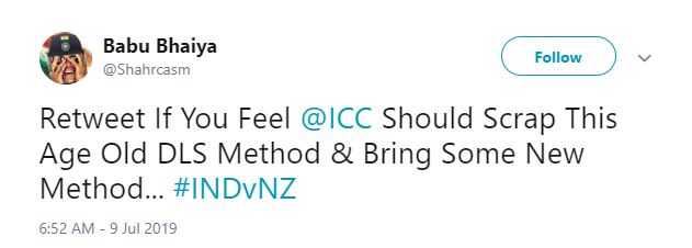 "Retweet If You Feel @ICC Should Scrap This Age Old DLS Method & Bring Some New Method... #INDvNZ," a user tweeted.