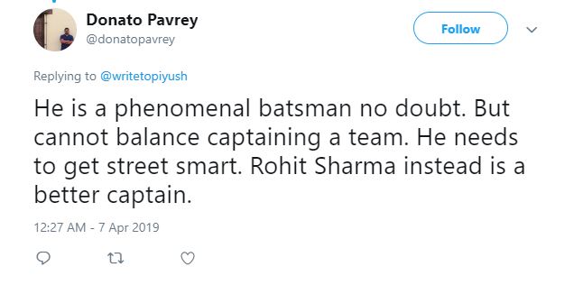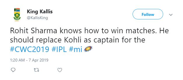 One user twitted, “Rohit Sharma knows how to win matches. He should replace Kohli as captain for the #CWC2019 #IPL #mi.”