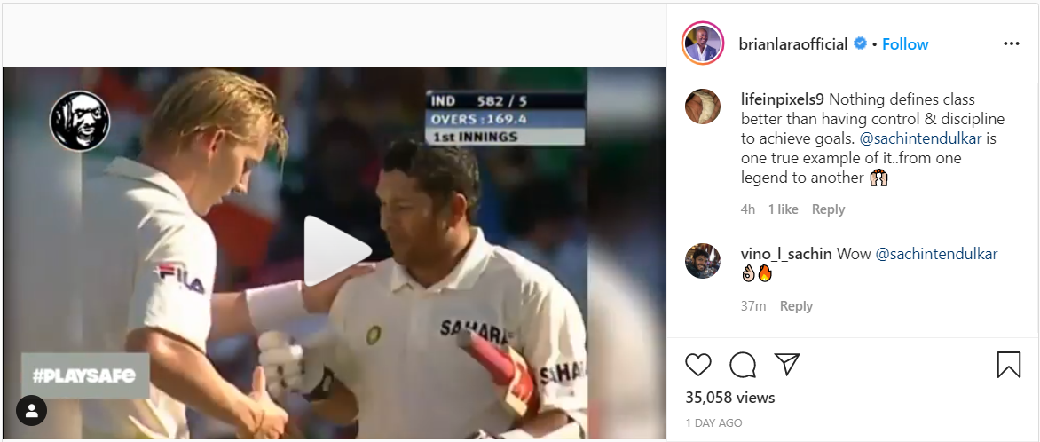 "Can you imagine playing Test cricket at the age of 16 until the next 24 years. That is just unbelievable. Sachin has played some amazing innings throughout his career but none with more discipline and determination like his 241* against Australia at the Sydney Cricket Ground (SCG)," Lara said in an Instagram post.
