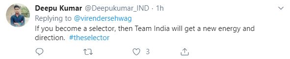 Another user wrote: "If you become a selector, then Team India will get a new energy and direction. #theselector."