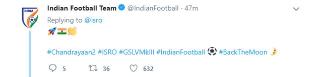 Indian Football Team replied to ISRO's tweet with the emojis and praised the launch.