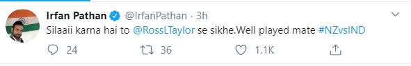 Former Indian fast bowler Irfan Pathan also lauded Ross Taylor 's knock of 109 runs.