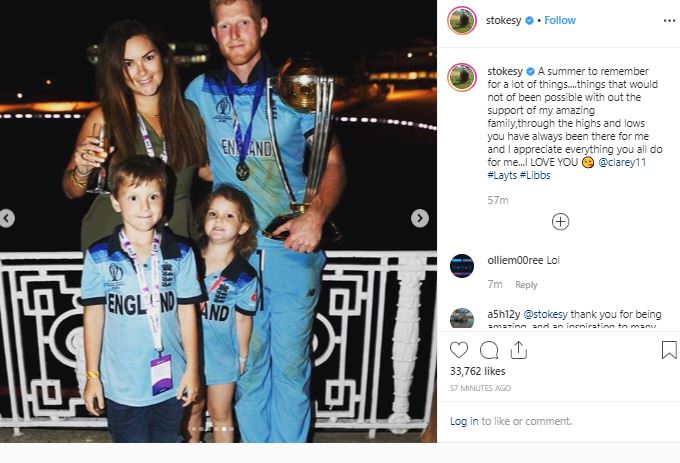 Stokes posted a series of pictures with his family on Saturday and captioned the post on Instagram as "A summer to remember for a lot of things....things that would not of been possible without the support of my amazing family,through the highs and lows you have always been there for me and I appreciate everything you all do for me...I LOVE YOU @clarey11 #Layts #Libbs".