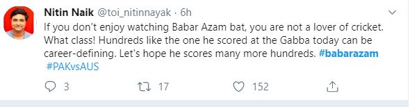"If you don't enjoy watching Babar Azam bat, you are not a lover of cricket. What class! Hundreds like the one he scored at the Gabba today can be career-defining. Let's hope he scores many more hundreds. #babarazam #PAKvsAUS," another fan tweeted.