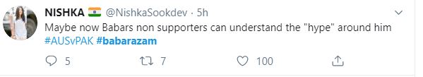 "Maybe now Babar's non-supporters can understand the "hype" around him #AUSvPAK #babarazam," a Twitter user commented.