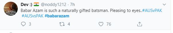 "Babar Azam is such a naturally gifted batsman. Pleasing to eyes..#AUSvPAK #AUSvsPAK #babarazam," another user pointed.