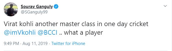 "Virat Kohli another master class in one day cricket @imVkohli @BCCI .. what a player," Ganguly tweeted.