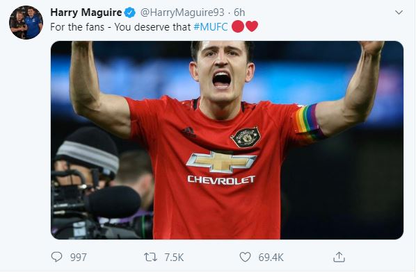 United's centre-back Harry Maguire also said that the win is dedicated to the fans of the club.