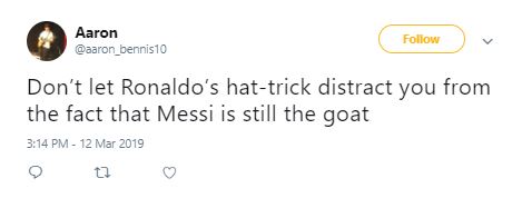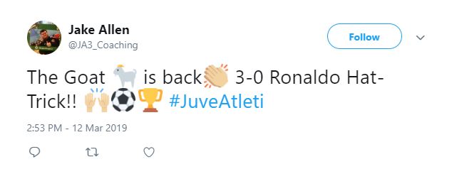 With this hat-trick, the Portuguese player helped Juventus dismantle the other side to have a 3-0 win and reached into the quarter finals and as far as the Twitter was concerned, he immediately became the “GOAT” for his fans.