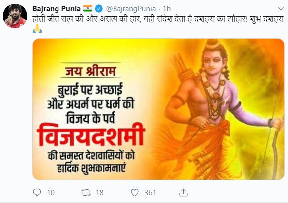 From Sachin Tendulkar to Bajrang Punia, sports fraternity extends wishes on Dussehra