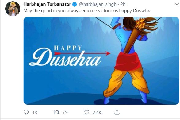 Harbhajan Singh also took to social media account to wish his fans on the auspicious occasion of Vijay Dashmi.