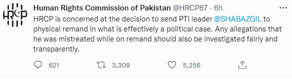 The Human Rights Commission of Pakistan (HRCP) also expressed concern at the decision taken by the court to send Gill to physical remand.