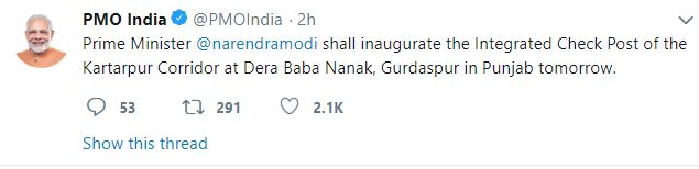 PM Modi to inaugurate Kartarpur corridor checkpost on Nov 9