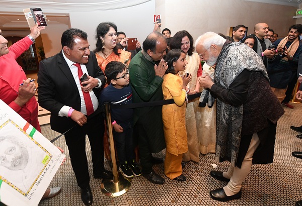 The Prime Minister greeted members of the Indian community, who were awaiting his arrival at Hotel Adlon Kempinski in Berlin. Many children along with their parents were present at the hotel, waving their hands at the Prime Minister's arrival.