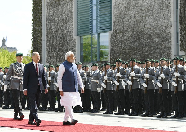 PM Modi was accorded a ceremonial guard of honour and was received by Chancellor Olaf Scholz at the Federal Chancellery. This was followed up by a bilateral one-on-one meeting.