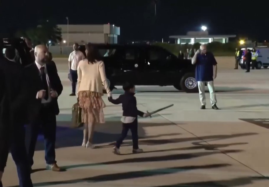 In a brief yet endearing moment before boarding AF2, Vance was seen gently lifting his sleeping daughter, Mirabel, from their car, while his sons, Ewan and Vivek, waved toy swords as they boarded with Second Lady Usha Vance.