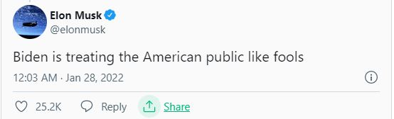 Musk also said that "Biden is treating the American public like fools".