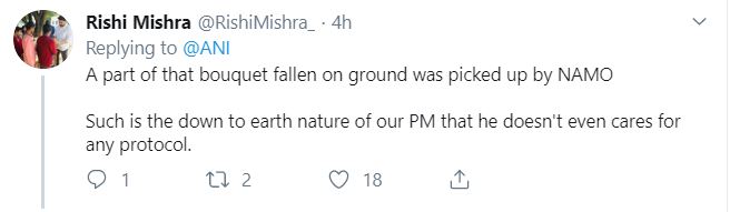 "A part of that bouquet fallen on ground was picked up by NAMO. Such is the down to earth nature of our PM that he doesn't even cares for any protocol," wrote a Twitter user.