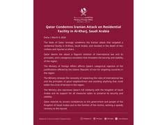 The government of Qatar has strongly condemned an attack attributed to Iran that targeted a residential facility in Al-Kharj, a city in Saudi Arabia, resulting in the deaths of two civilians and leaving several others injured.