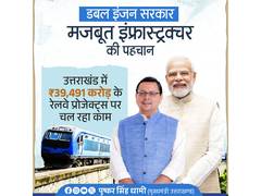 Uttarakhand Chief Minister Pushkar Singh Dhami on Sunday praised Prime Minister Narendra Modi's leadership for the state's rapid development. In a post on X, he highlighted ₹39,491 crore in railway projects to enhance modern infrastructure and connectivity and credited the progress to the