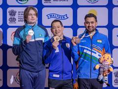Anish Bhanwala clinched bronze in the men's 25m rapid-fire pistol (RFP), his third Asian Championship medal, as Kazakhstan dominated day eight of the Asian Rifle/Pistol Championship.