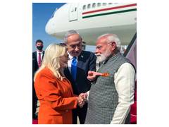 Prime Minister Narendra Modi arrived in Tel Aviv on Wednesday to a warm welcome, with Israeli Prime Minister Benjamin Netanyahu and his wife Sara Netanyahu receiving him at the airport.