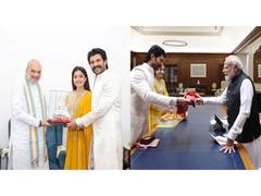 Newlywed bride Rashmika Mandanna on Sunday met with Telangana CM Revanth Reddy to formally invite him for her and Vijay Deverakonda's wedding reception in Hyderabad on March 4.