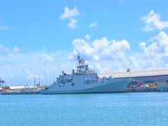 The ship was at Mauritius to participate in the 57th Mauritius National Day celebrations, representing India with a marching contingent, the Indian Navy band and flypast by two MH 60R helicopters.
