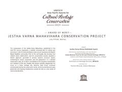 The restoration and retrofitting of Jestha Varna Mahavihara, Lalitpur, Nepal -- a Government of India-funded project supported through the Ministry of External Affairs and the Embassy of India in Kathmandu -- has been conferred the UNESCO Asia Pacific Award of Merit 2025. The award was of
