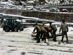 Approximately 350 tourist vehicles are stranded Near Tsangu between Sipsu and 16th mile along the Jawaharlal Nehru (JN) Road under Sherethang following the heavy snowfall reported around 11:30 am on Sunday.